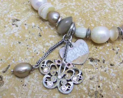 天然素材とスワロフスキークリスタルやガラスビーズを調和させたファッションアクセサリー。下の素材が使われています(参考)。商品によって使われているパーツの種類は違います。